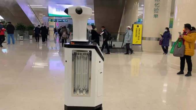 消毒機器人什么場合作用大,大型公共場所使用消毒機器人進行消毒