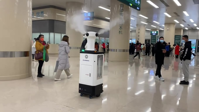 消毒機器人什么場合作用大,大型公共場所使用消毒機器人進行消毒