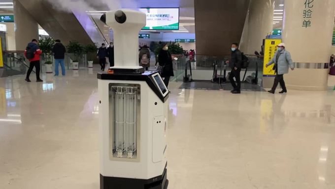 消毒機器人什么場合作用大,大型公共場所使用消毒機器人進行消毒