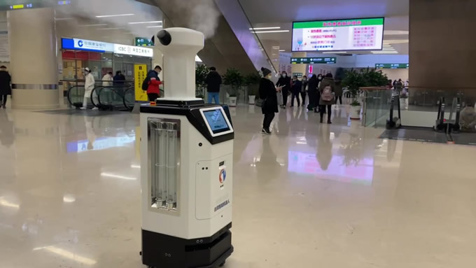 消毒機器人什么場合作用大,大型公共場所使用消毒機器人進行消毒