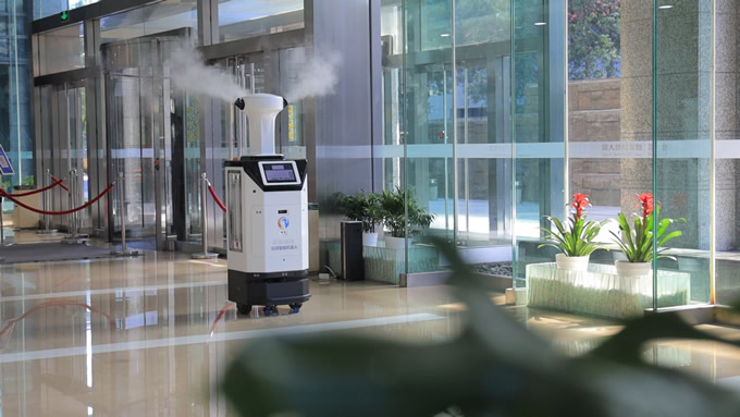 消毒機器人什么場合作用大,大型公共場所使用消毒機器人進行消毒