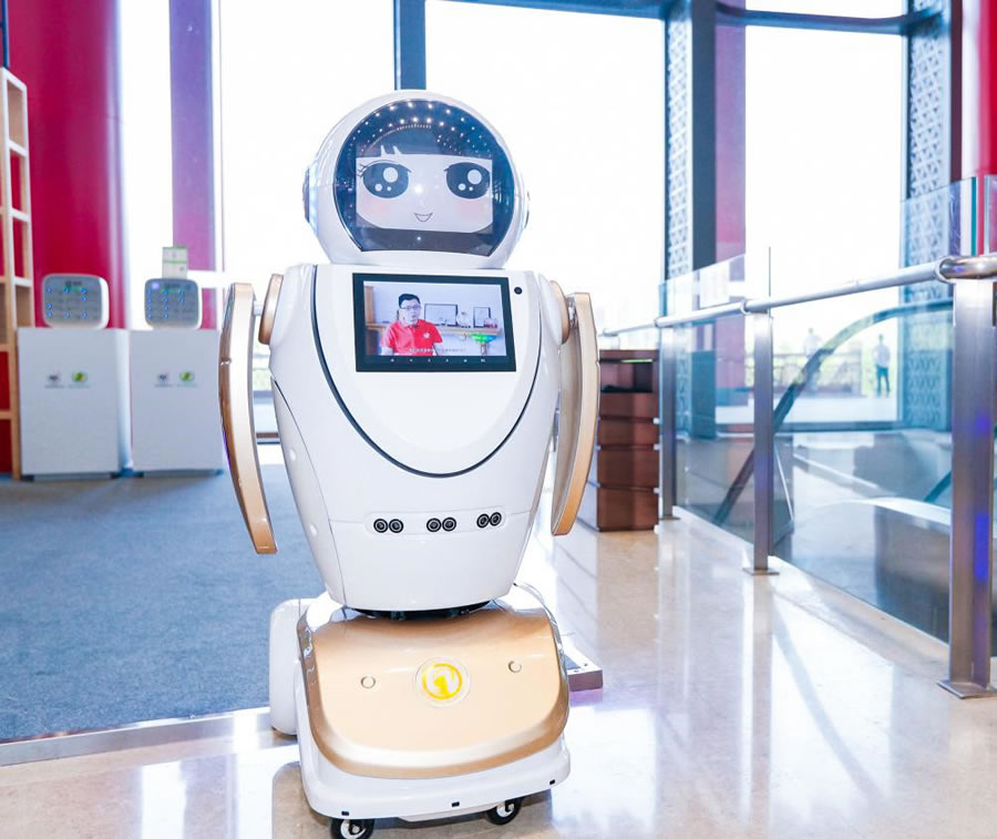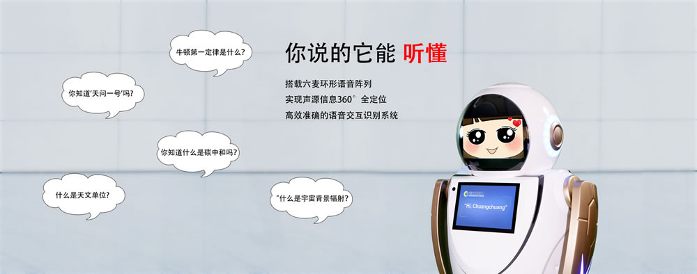 迎賓機(jī)器人借助云端智能知識(shí)庫(kù)平臺(tái),實(shí)現(xiàn)了在語(yǔ)義理解、知識(shí)學(xué)習(xí)推理與表示等方面完備的智能支撐體系。釆用先進(jìn)的語(yǔ) 音引擎,搭載環(huán)形麥克風(fēng)陣列,運(yùn)用聲控識(shí)別、人臉識(shí)別、情緒識(shí)別等技術(shù)為客戶提供更加人性化的交互式服務(wù)。