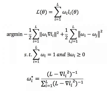 這是一個多任務學習問題,如何平衡這些任務的學習權重呢?另外,還有一個問題,目前很多實驗指出 BERT 中 NSP 的效果并不一定非常有效,對終的結果的影響不是特別明朗。但是對于圖文匹配來說,Text and Image Alignment 這個 loss 是至關重要的。那么如何平衡這幾個任務的學習呢?這里我們提出 adaptive loss 算法,我們將學習任務的權重看做是一個新的優(yōu)化問題,如圖 3 所示。FashionBERT 的 loss 是整體 loss 的加和,由于只有三個任務,其實我們可以直接得到任務權重 W 的解析解(具體的求解過程可以參考我們論文,這里不再贅述)。