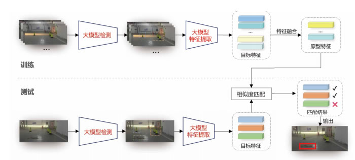 項目利用大模型檢測并提取場景中物體的特征,并使用特征融合和存儲庫技術(shù)讓算法“記住”正常場景,再通過融合特征比對的方式分辨出異常物體。該算法充分發(fā)揮了大模型跨模態(tài)、預(yù)訓(xùn)練、開放性等眾多優(yōu)勢,以很小的代價就能完成傳統(tǒng)深度學(xué)習(xí)算法無法完成的任務(wù)。