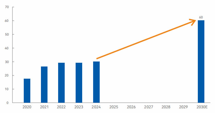 展望2030年,我們滿懷信心,預(yù)測市場將有超1倍的增長空間,這意味著從明年起進(jìn)入恢復(fù)期后,每年需新增約5萬臺銷量。 預(yù)計2030年ZG工業(yè)機(jī)器人市場銷量將達(dá)到60萬臺,屆時ZG工業(yè)機(jī)器人銷量國產(chǎn)占比將達(dá)到70%左右。