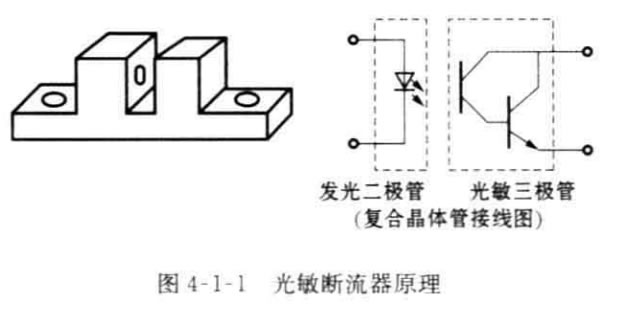 Z常用的位置傳感器是微動行程開關(guān),它由微型開關(guān)、操作機構(gòu)(撞頭或推桿) 組成。它安裝在動作范圍兩端的極限位置上,當裝在機器人運動部件上的擋塊移 動到某一極限位置時,觸動操作機構(gòu)的撞頭或推桿,使微型開關(guān)的觸頭閉合或斷 開,即可獲得位置的電信號。微動行程開關(guān)是一種既簡單又可靠的檢測傳感器。 也可以用非接觸型的光電開關(guān)作位置傳感器,其工作原理與微動行程開關(guān)相同,區(qū) 別 在 于 它 是 利 用 光 敏 斷 流 器 來 代 替 微 型 開 關(guān) 的 。 把 發(fā) 光 二 極 管 和 光 敏 三 極 管 在 相對方向中間隔開一段距離安裝,當裝有擋塊的機器人 運動部件從中間穿過時,發(fā)光管的光線被隔斷,從而使 光敏管感受到電信號,如圖4-1-1所示。