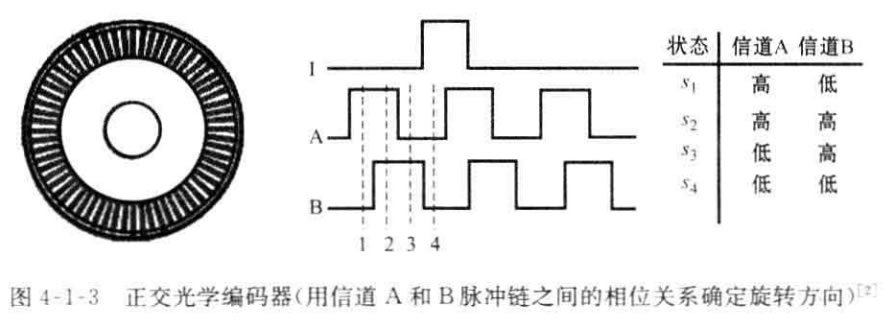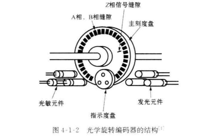 以圖4-1-2為例說明光學(xué)編碼器的結(jié)構(gòu)。光學(xué)編碼器由發(fā)光元件、屏蔽光的固 定光柵、與轉(zhuǎn)軸一起旋轉(zhuǎn)的帶光柵的轉(zhuǎn)盤和固定的光敏元件組成。發(fā)光元件和光敏 元件安放在碼盤的兩側(cè),當轉(zhuǎn)盤轉(zhuǎn)動時,根據(jù)固定的和運動的光柵的排列,光敏元件 接收的光通量會發(fā)生變化。光敏元件輸出的波形經(jīng)過整形后形成脈沖,根據(jù)脈沖計 數(shù),可以得到固定在碼盤上的轉(zhuǎn)軸的角位移。在測量中,Z后得到的光強信號用閾 值變換成離散的方波,在亮和暗的狀態(tài)之間作選擇。分辨率以每轉(zhuǎn)周期數(shù)(CPR)度量。Z小的角分辨率可以容易地從編碼器的CPR 額定值計算出。典型的編碼 器可擁有2000 CPR, 而光學(xué)編碼器工業(yè)可容易地制造出具有10000 CPR 的 編 碼 器。當然,根據(jù)所需的帶寬,Z關(guān)鍵的是編碼器需要足夠快,以計算期望的軸轉(zhuǎn)速。