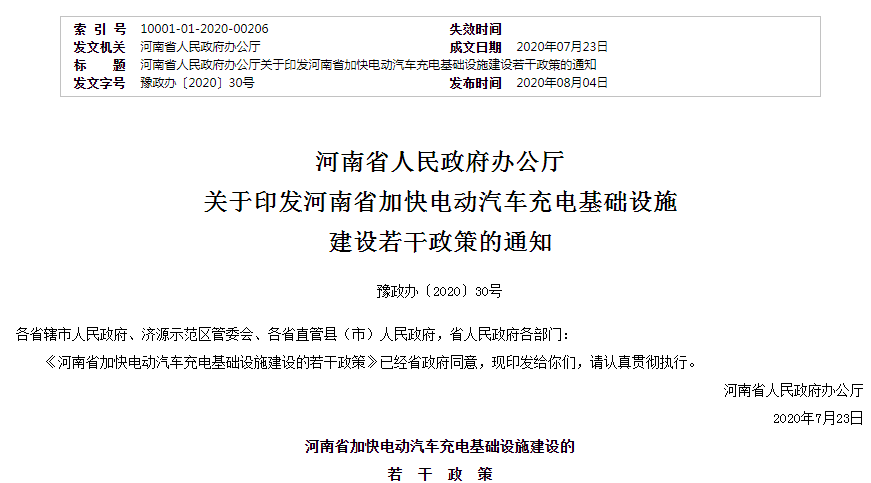 近日,河南省人民政府辦公廳印發(fā)了《河南省加快電動汽車充電基礎設施建設的若干政策》,明確提出到2025年,全省累計建成集中式充換電站2000座以上,各類充電樁15萬個以上。