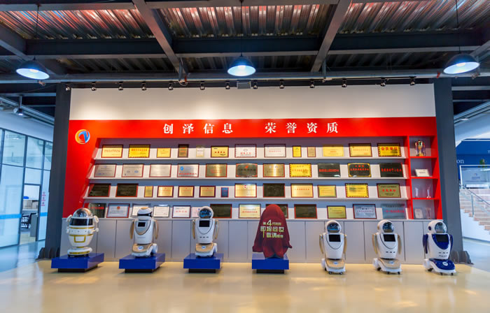 創(chuàng)澤的智能機器人在前臺工作,可語音對話喚醒
