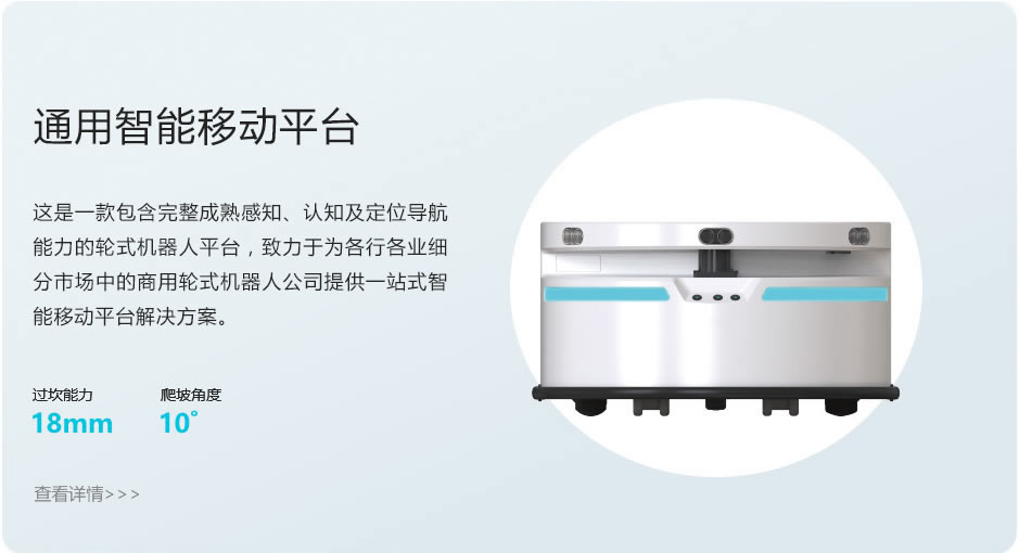 移動(dòng)機(jī)器人底盤續(xù)航10個(gè)小時(shí)以上,一次建圖超過幾萬(wàn)平方,融合多個(gè)視覺傳感器對(duì)行走環(huán)境進(jìn)行立體建模,滿足多種場(chǎng)景下使用有5大優(yōu)勢(shì)
