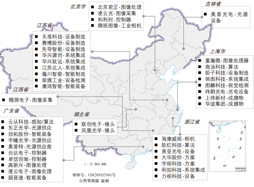 其中,廣東省在機器視覺檢測設(shè)備、算法與集成布局較為完善,江蘇省與浙江省的設(shè)備制造及系統(tǒng)集